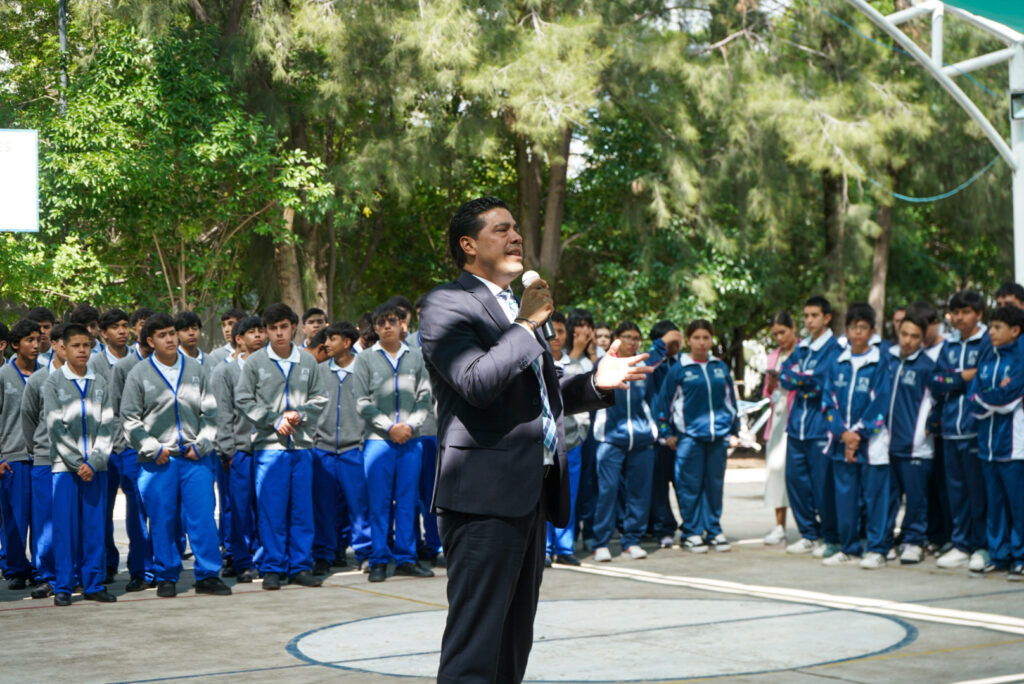 Acompañaron al presidente municipal en este evento la regidora Martha González Estrada, Christian Gutiérrez Márquez, titular de la Secretaría de Desarrollo Social (Sedesom), Miguel Ángel Muñoz, director de programas sociales de la Sedesom y el director del plantel, Víctor Guerrero Sabás.