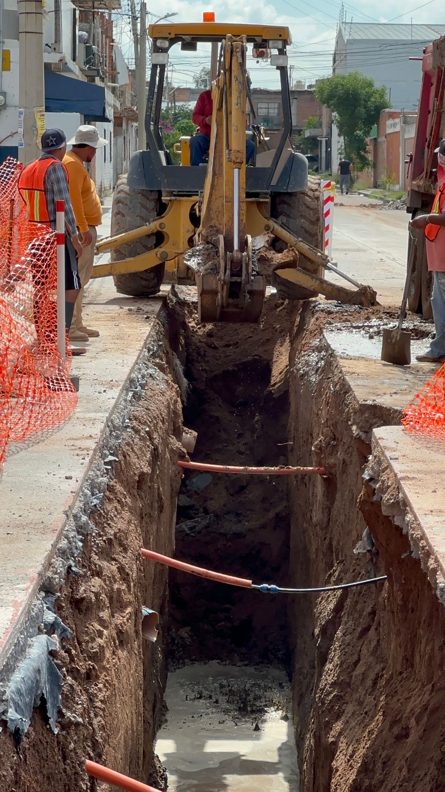 La obra se efectúa sobre la calle Juan B. Tijerina, en el tramo comprendido de Lázaro Cárdenas a la calle San Antonio de Padua, para ofrecer un servicio de drenaje más seguro, evitar riesgos y prevenir futuros brotes de aguas sanitarias.