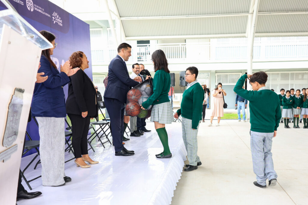 Durante la ceremonia, se realizó la entrega de material deportivo para que los alumnos cuenten con las herramientas necesarias para practicar deportes; asimismo, se reconocieron a Esther Solís Cisneros de 1º A, Ally Daniela Palos Silva de 1º B, Ricardo Gómez Hernández, de 1º C y a Iker Sebastián Fernández Esparza de 2º A, como los mejores promedios de la escuela, a quienes se les entregó un dispositivo tecnológico.