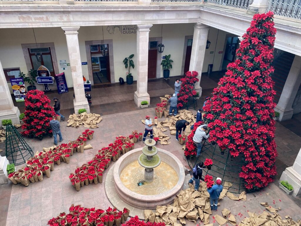 El Municipio de Aguascalientes, a través de la Secretaría de Servicios Públicos, informa que para la temporada navideña 2025 se colocaron más de 6 mil plantas de nochebuena en jardineras y camellones del primer cuadro de la ciudad. Esta acción forma parte del programa de embellecimiento y mantenimiento integral del Centro Histórico, con el propósito de ofrecer a las familias un entorno agradable, cálido y acorde con las festividades decembrinas.